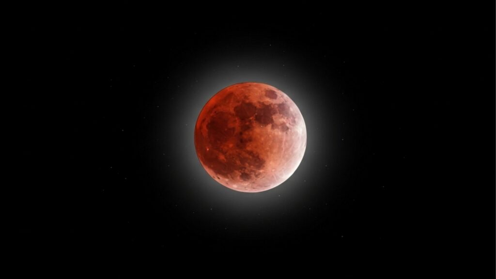 Durante esse processo ocorre a chamada Lua de Sangue, quando a Lua adquire uma tonalidade avermelhada. Esse efeito acontece porque a atmosfera terrestre filtra a luz solar e permite que apenas comprimentos de onda avermelhados alcancem a superfície lunar.